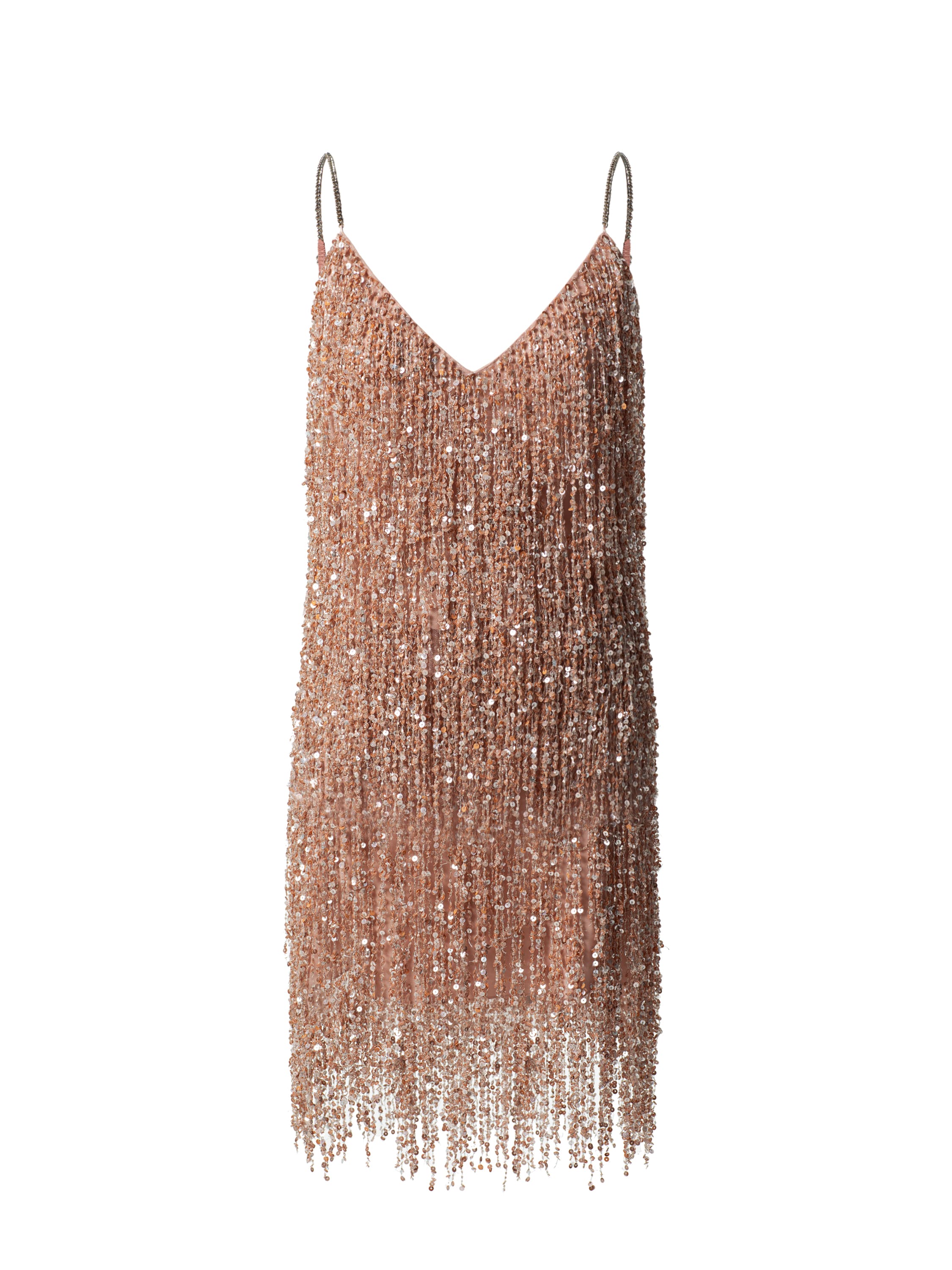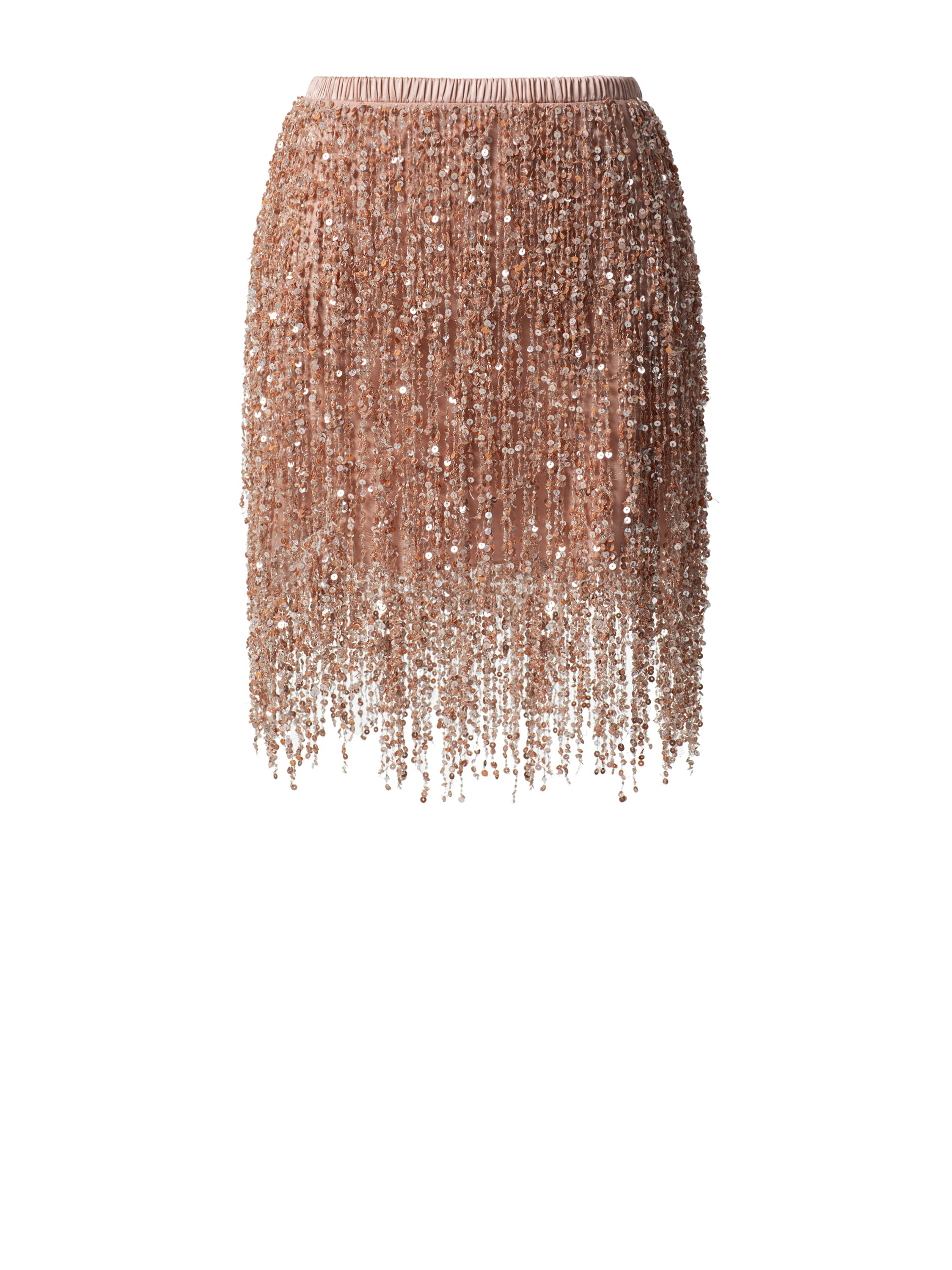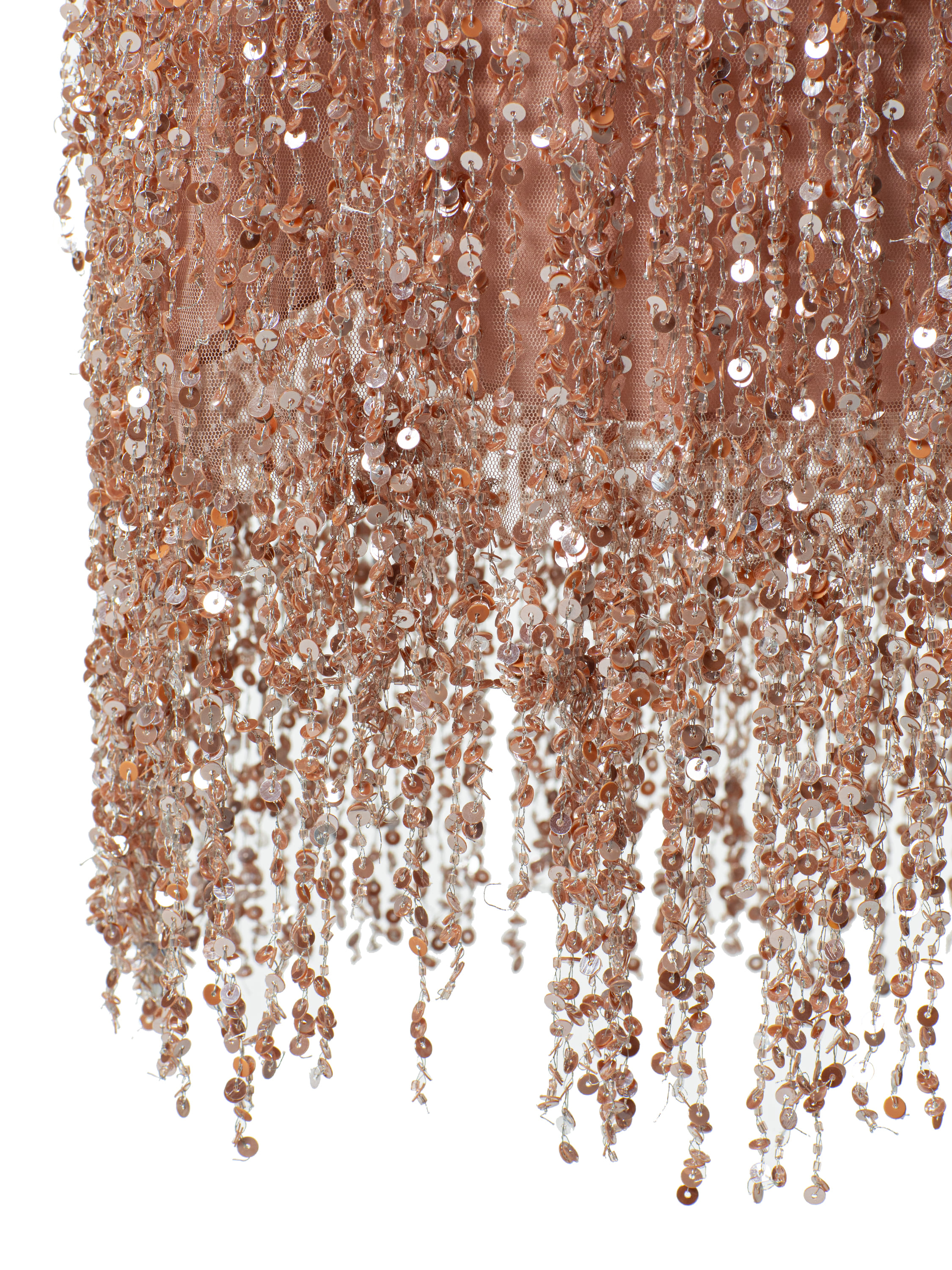 Вечерний комплект из шелковой юбки-мини на поясе и топа. Бахрома ручной работы с переливающимися пайетками.