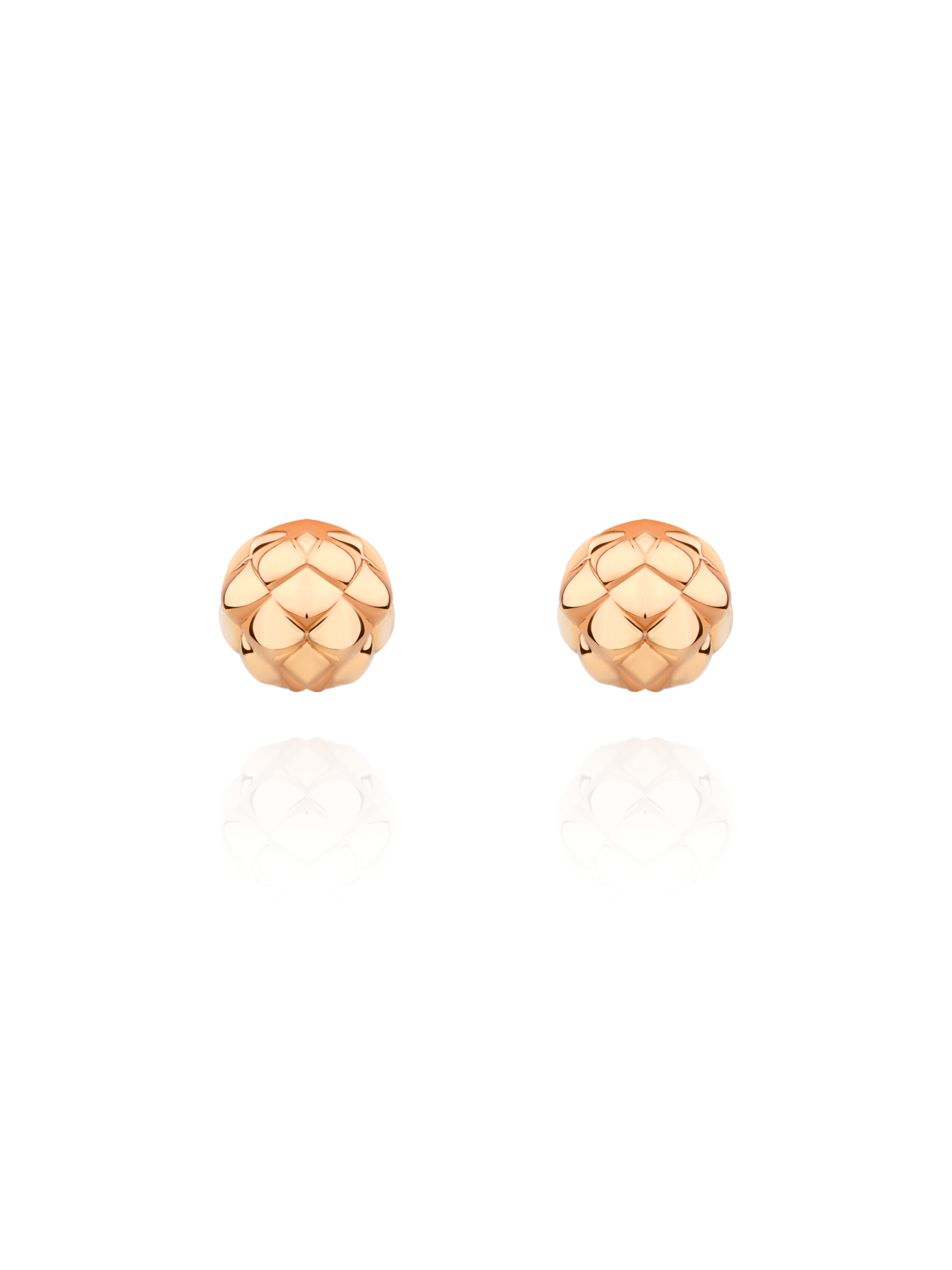 Серьги с фактурой чешуи выполнены из розового золота 750 пробы.