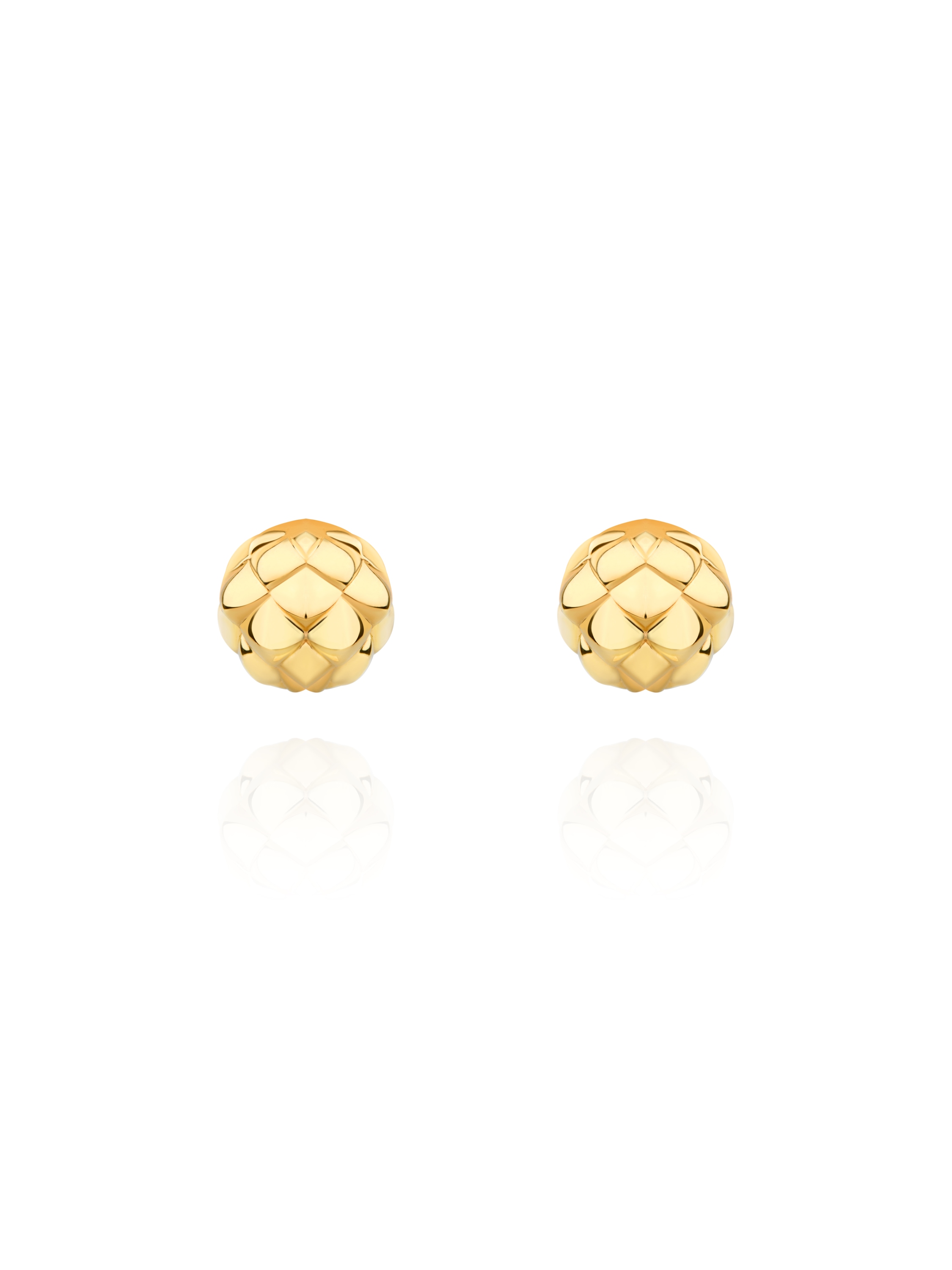 Серьги с фактурой чешуи выполнены из желтого золота 750 пробы.