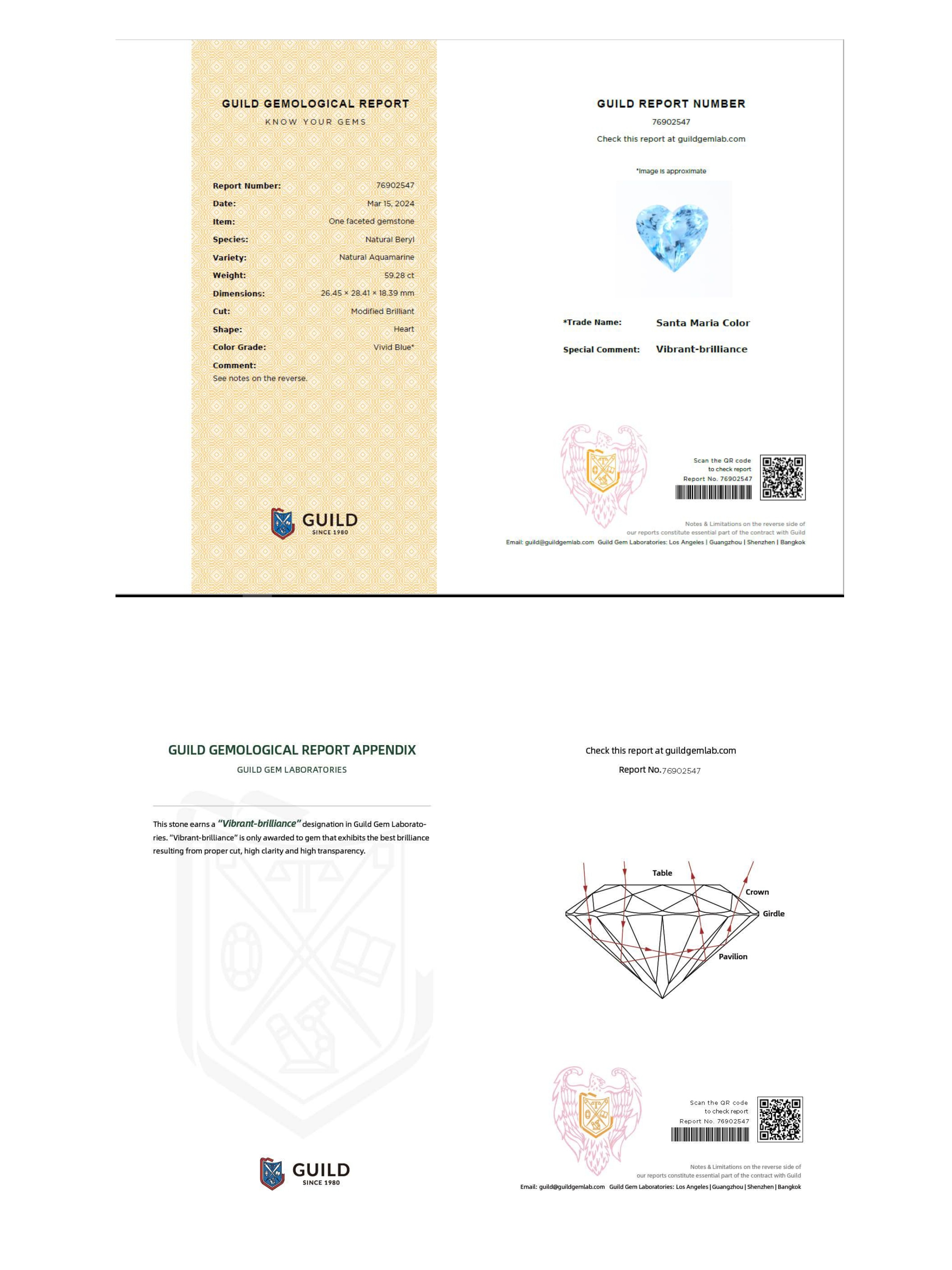 Колье с аквамарином редчайшего оттенка Santa Maria в огранке «сердце» 59.28 кт и 11 031 круглыми бриллиантами 54.02 кт.