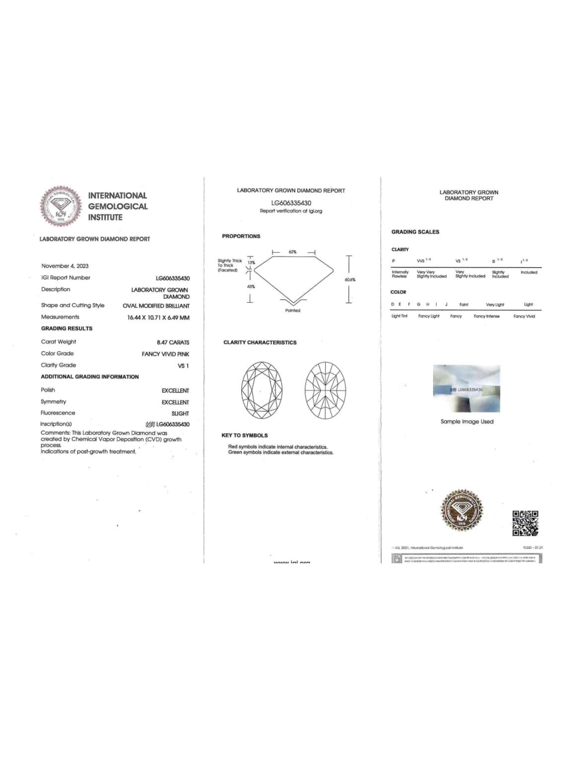 Колье с розовым бриллиантом LG в овальной огранке 8.47 кт LG FVP/VS1, 48 белыми жемчужинами Акойя с редким розовым овертоном 195.85 кт d 8.0-8.5, 185 бриллиантами LG 0.80 кт.