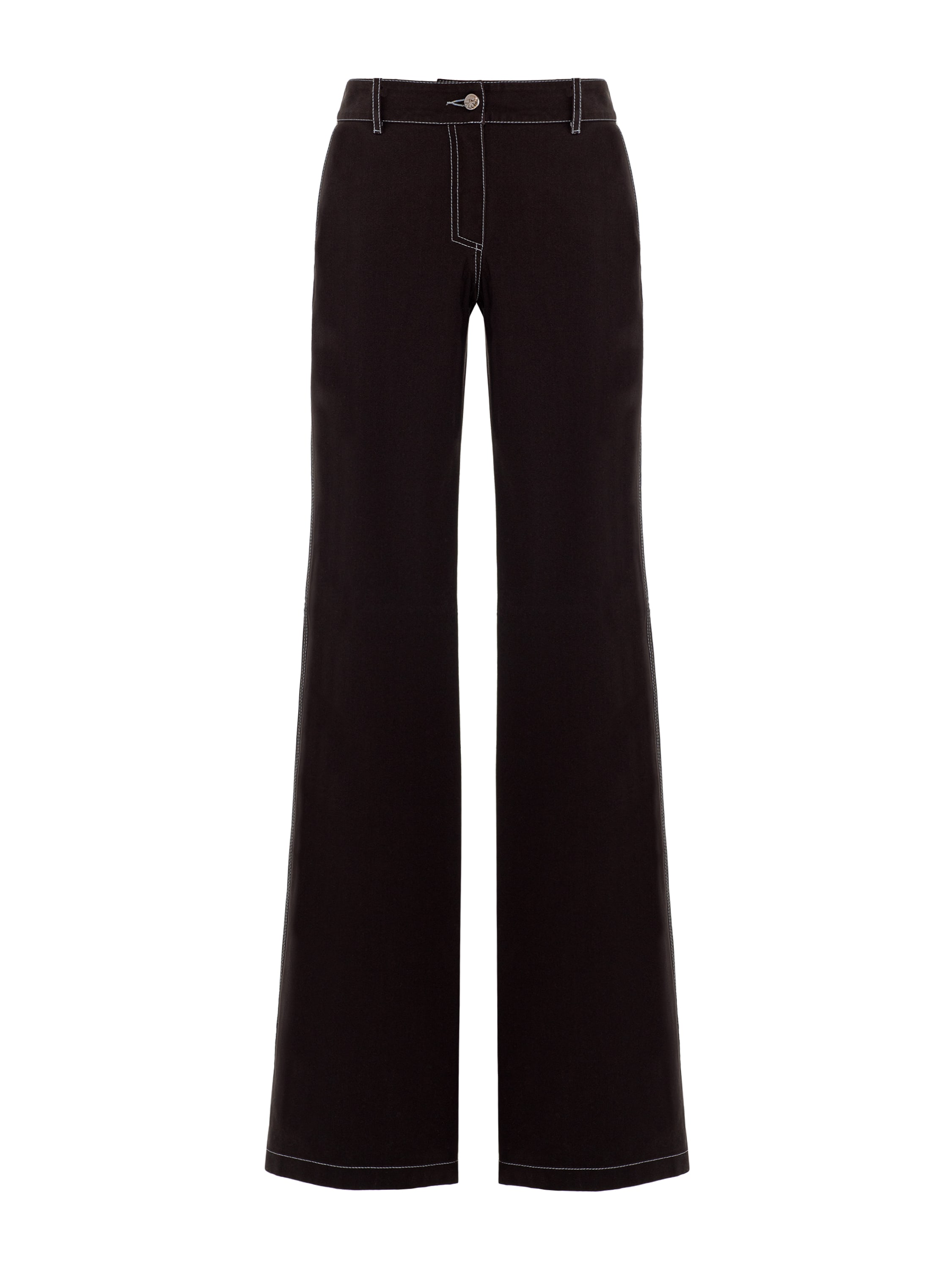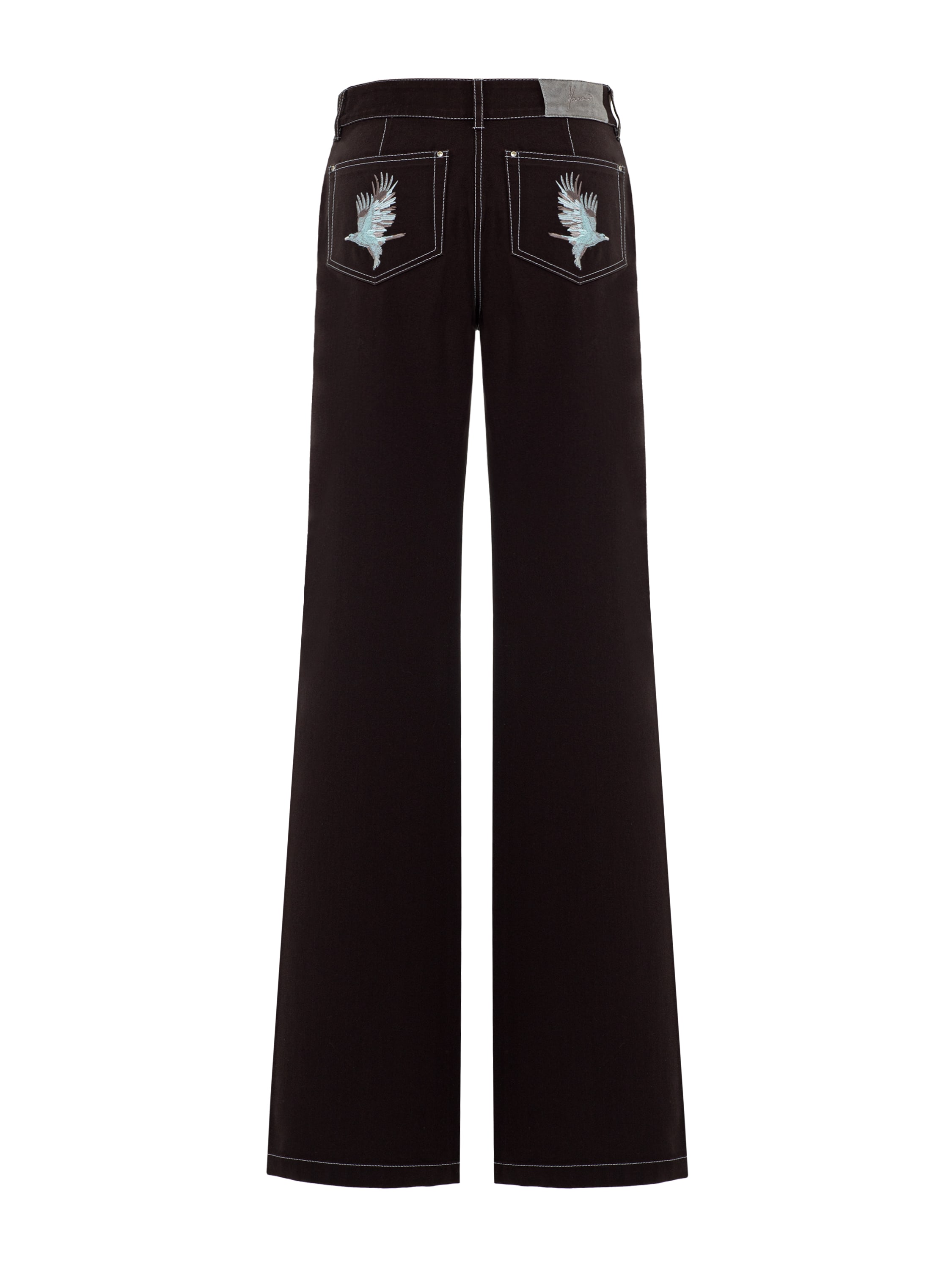 Темно-коричневые джинсы-клеш с вышивкой на карманах