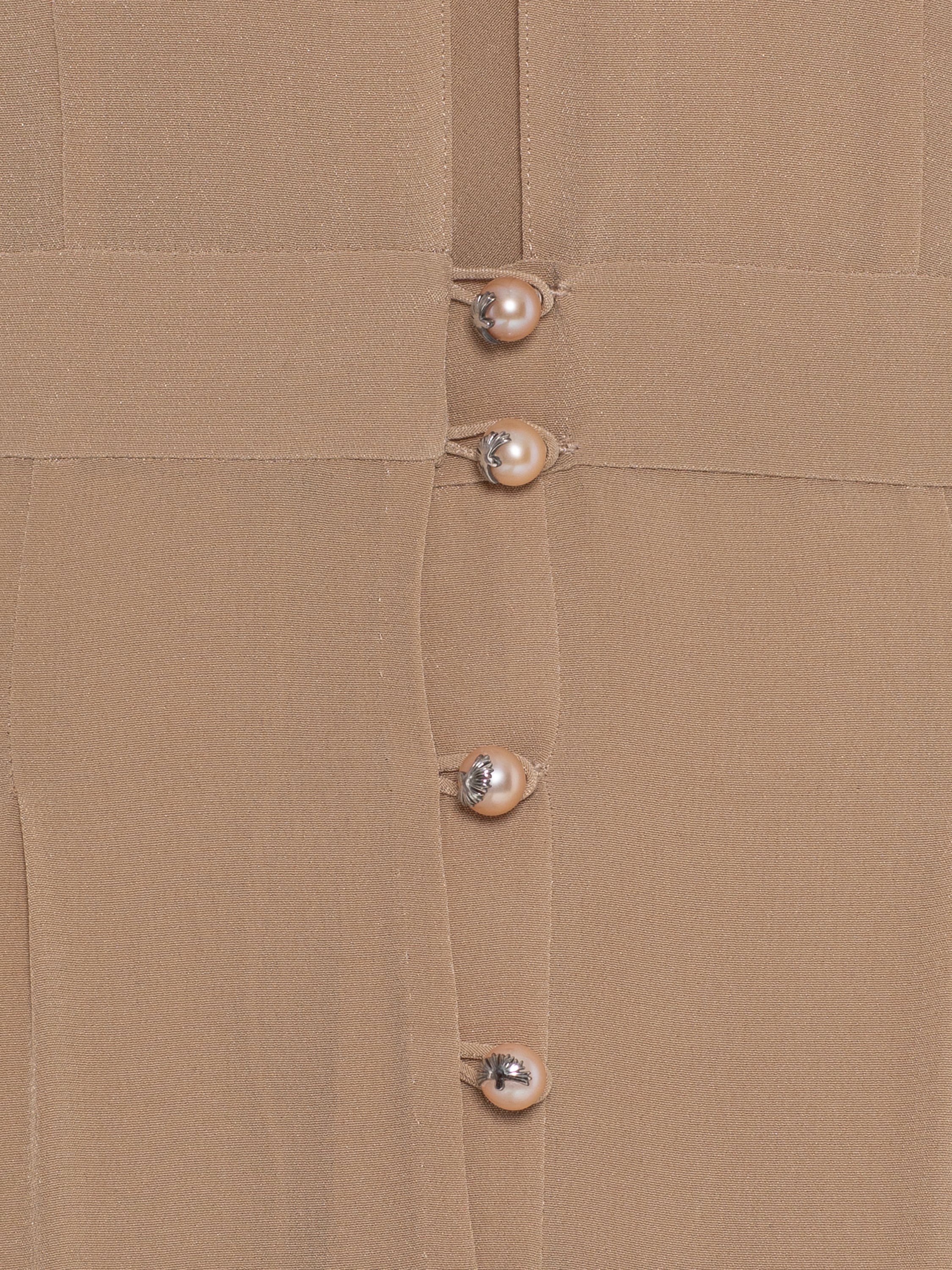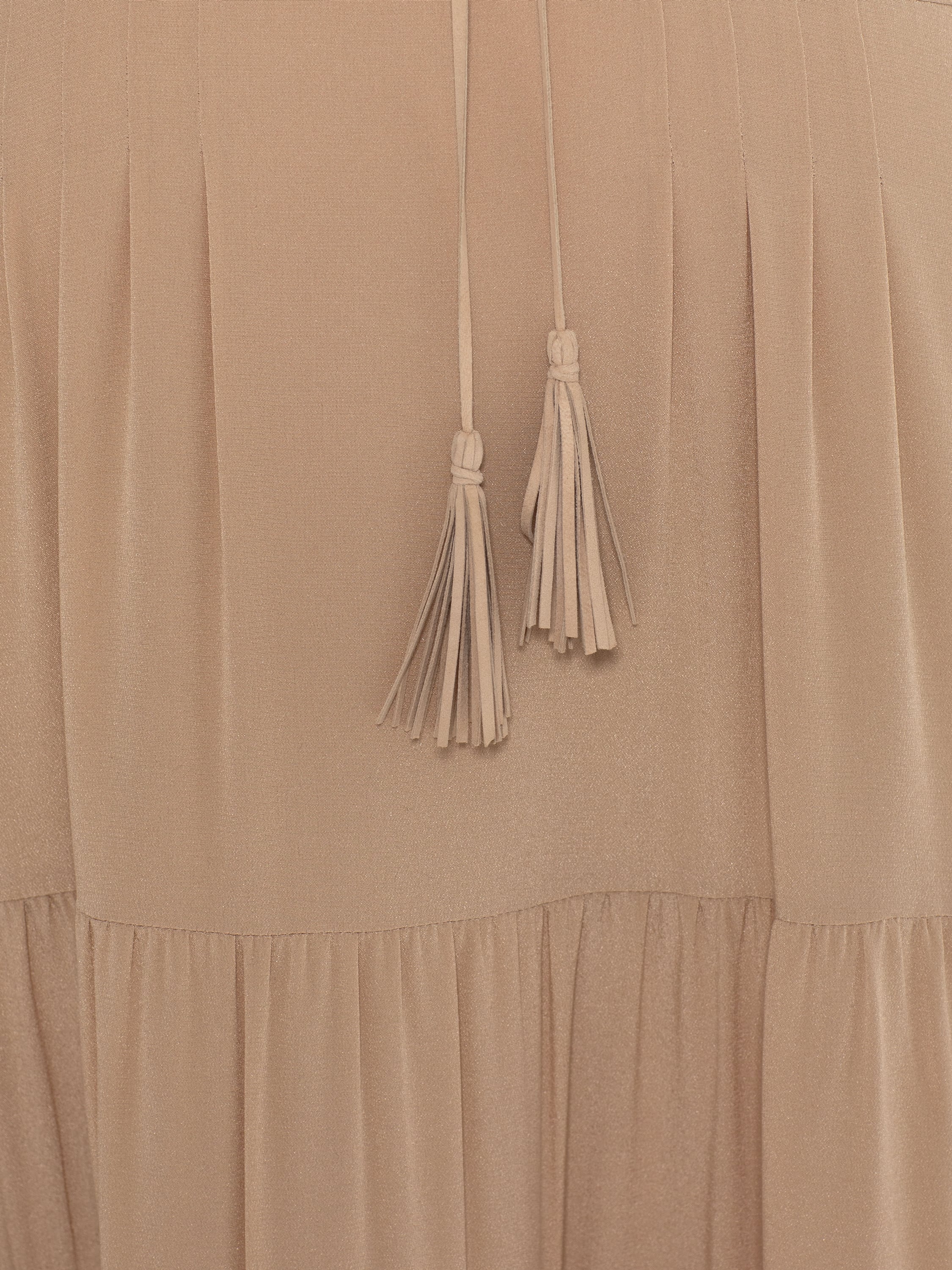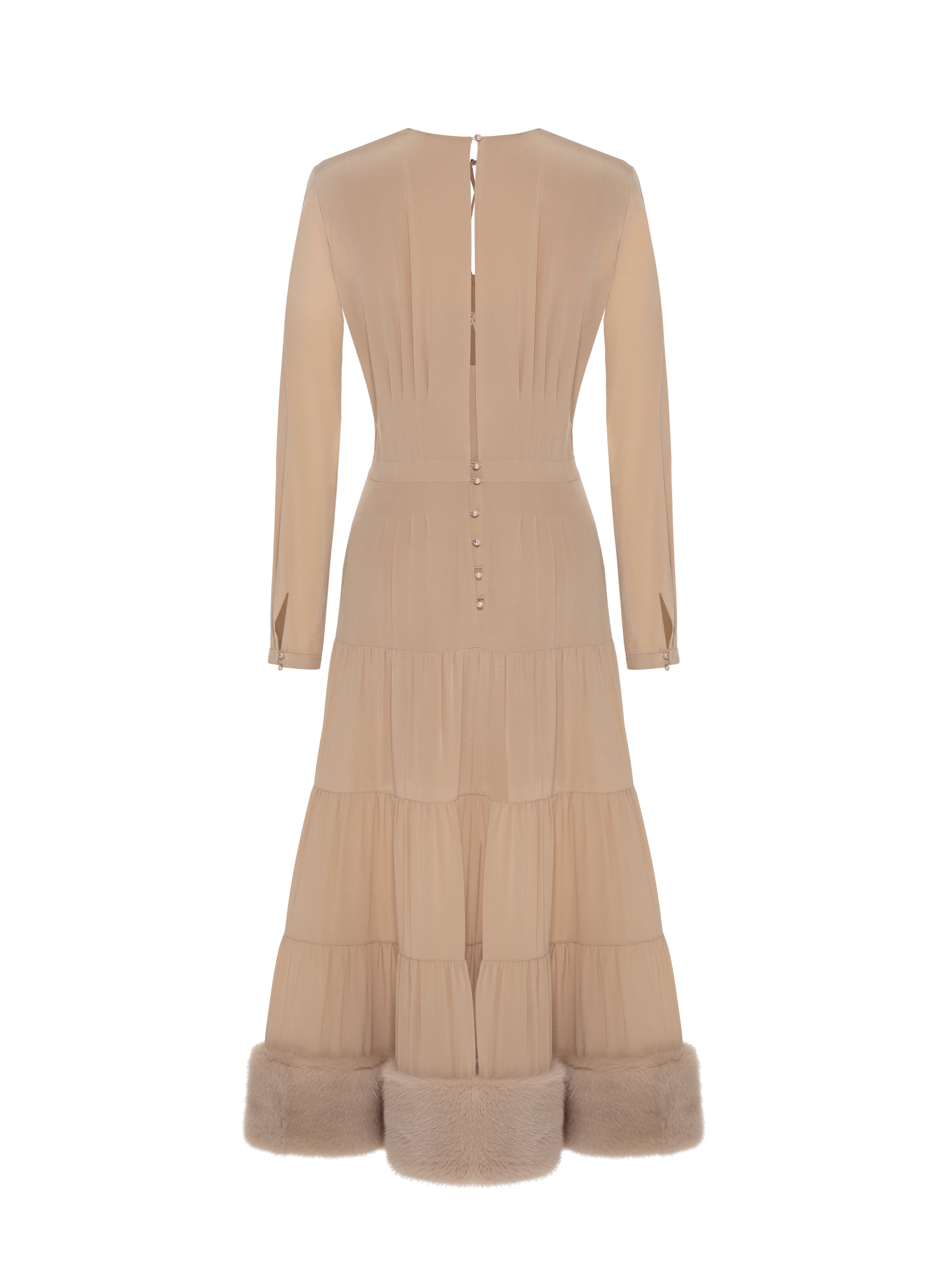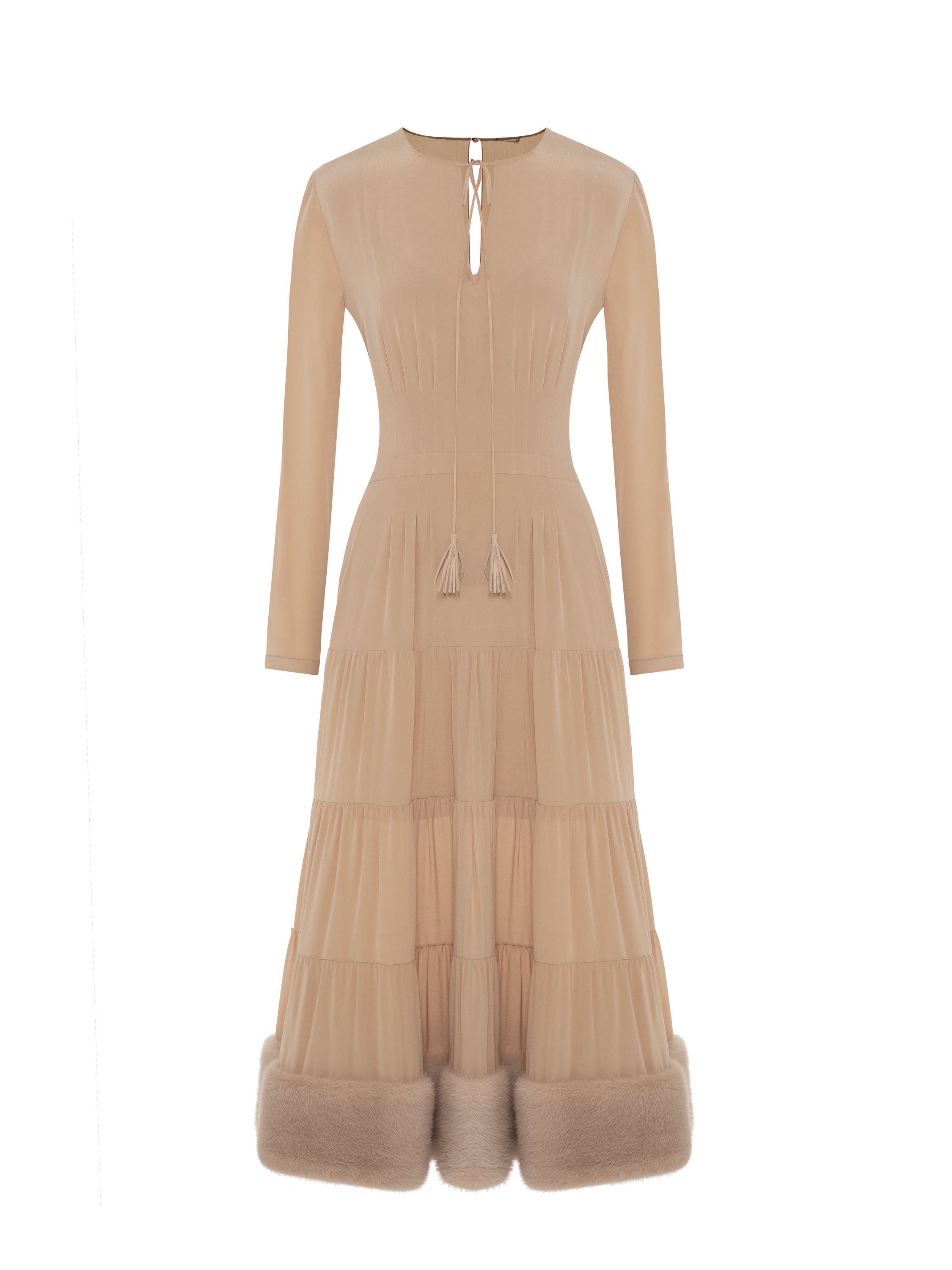 Бежевое платье из шелка с мехом норки