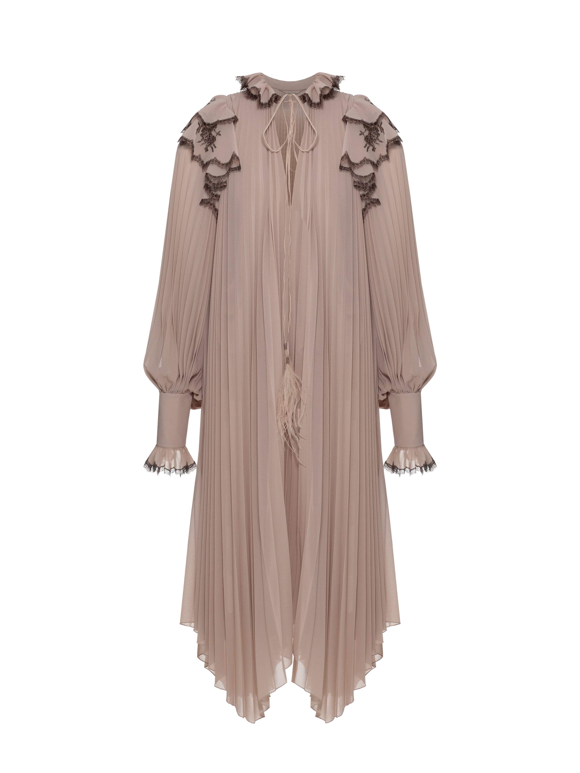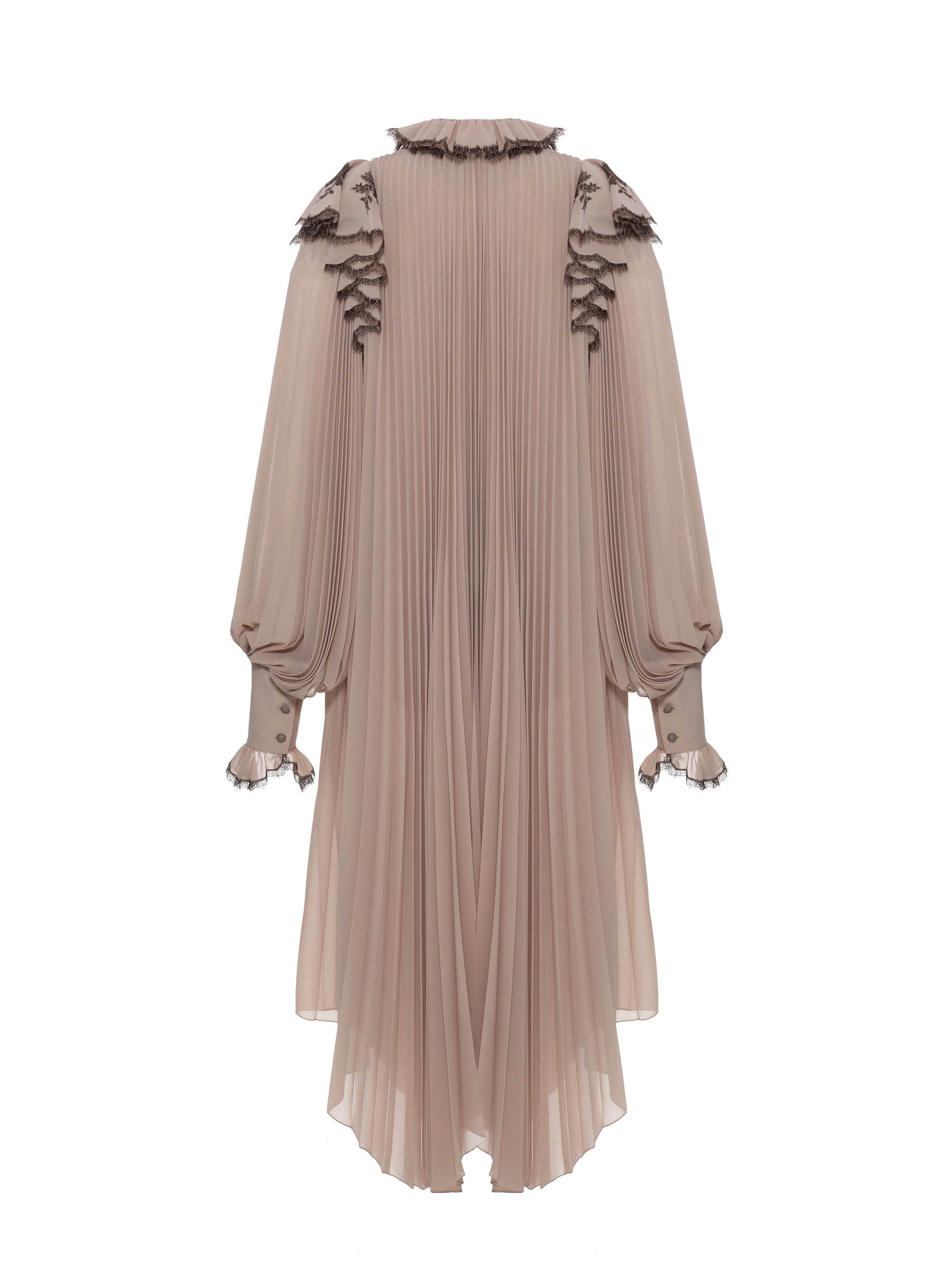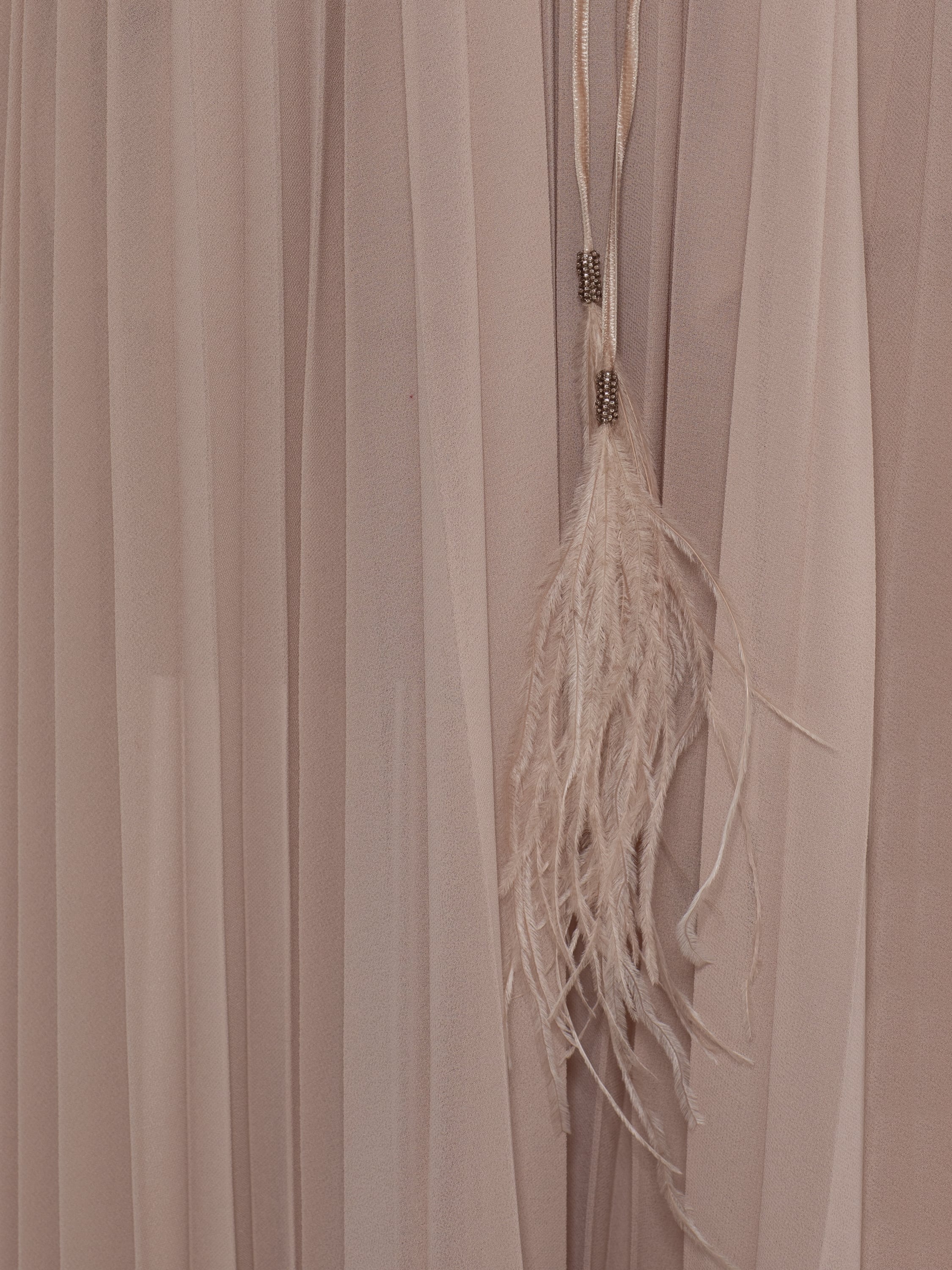Бежевое платье-миди из гофрированного шифона