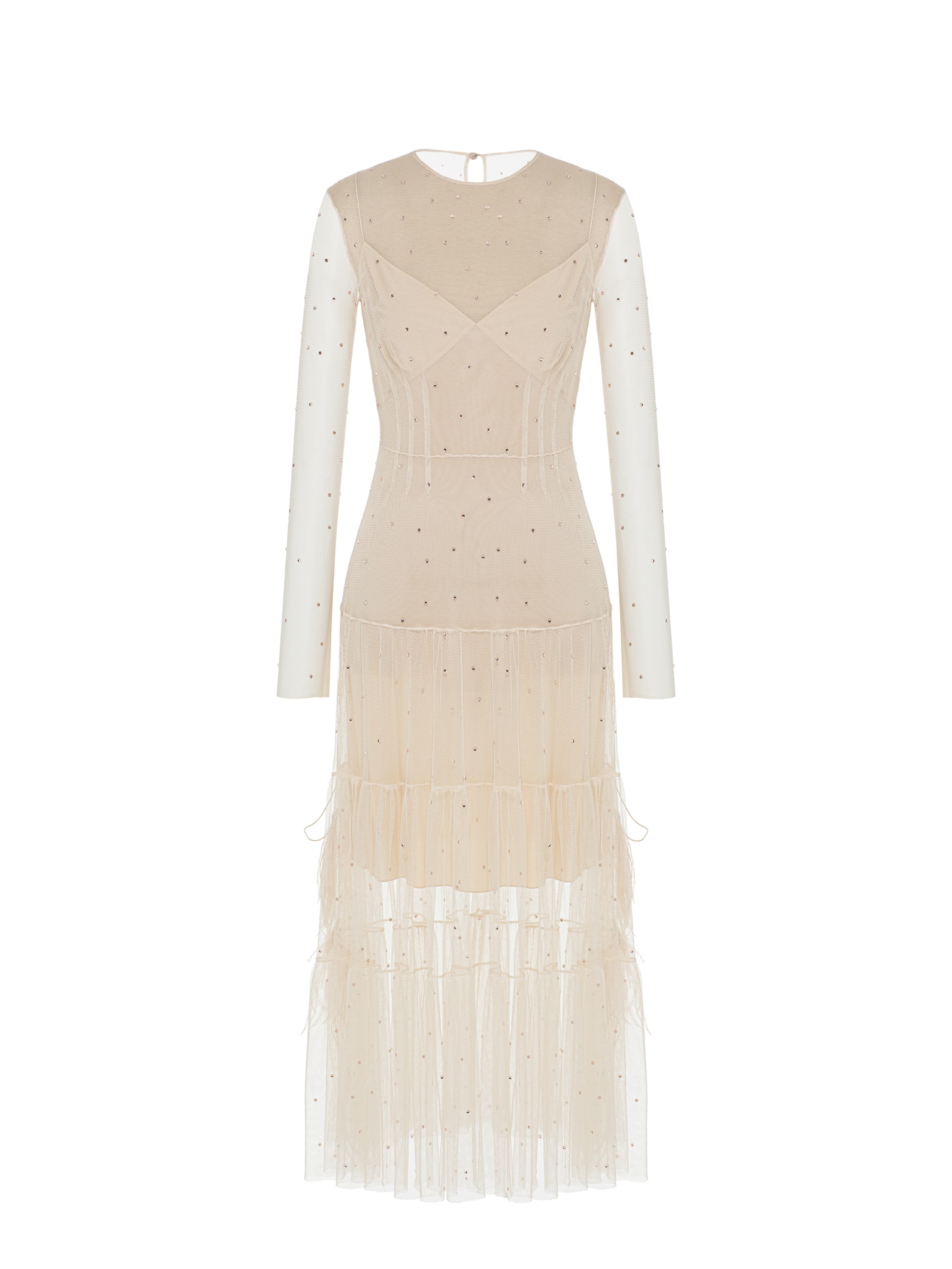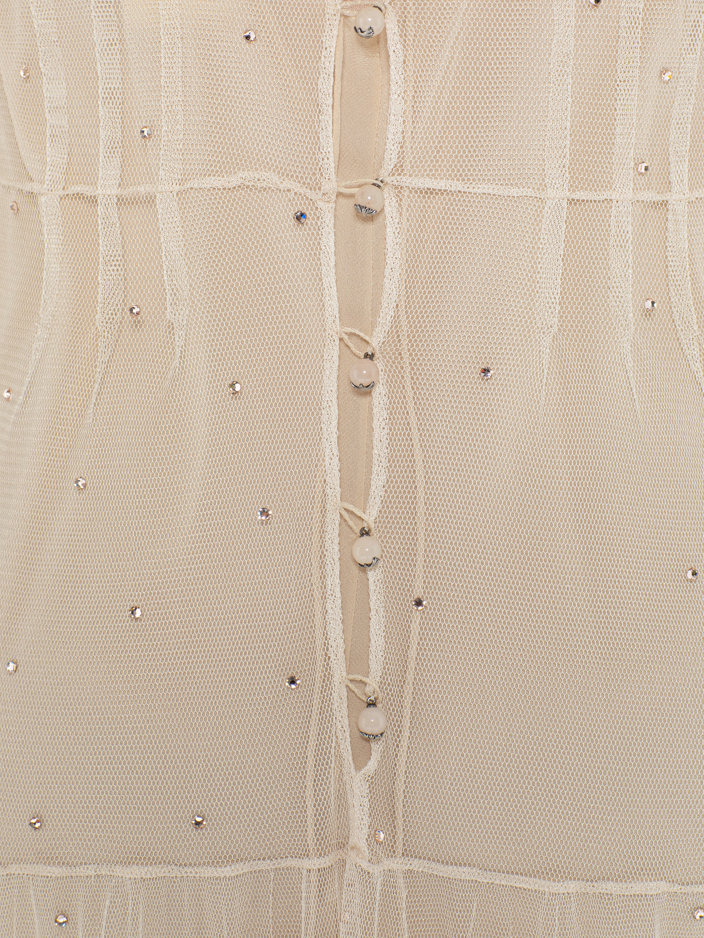 Бежевое платье-миди из сетки с кристаллами