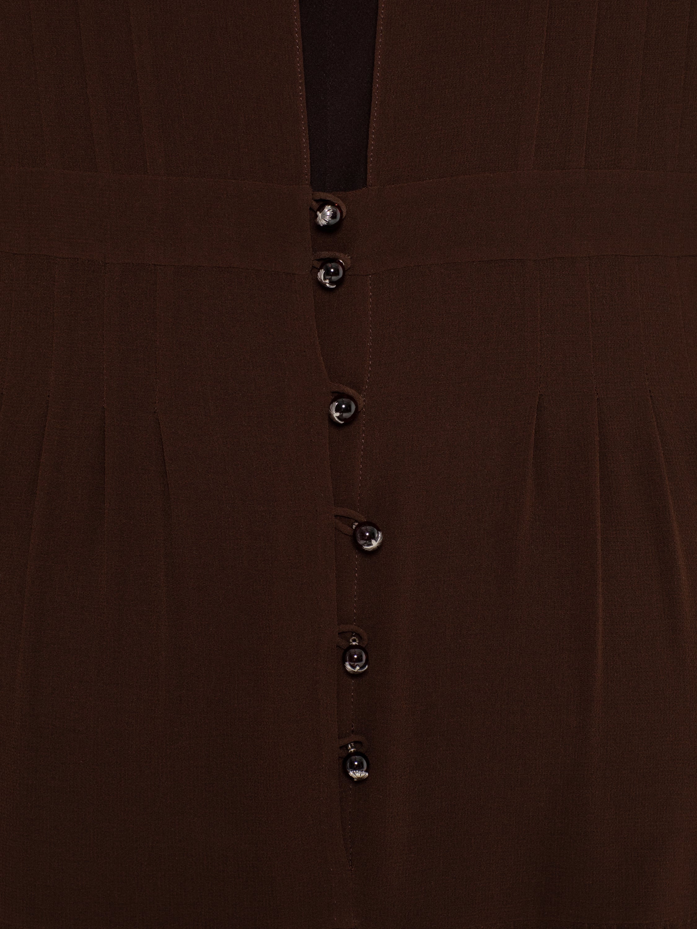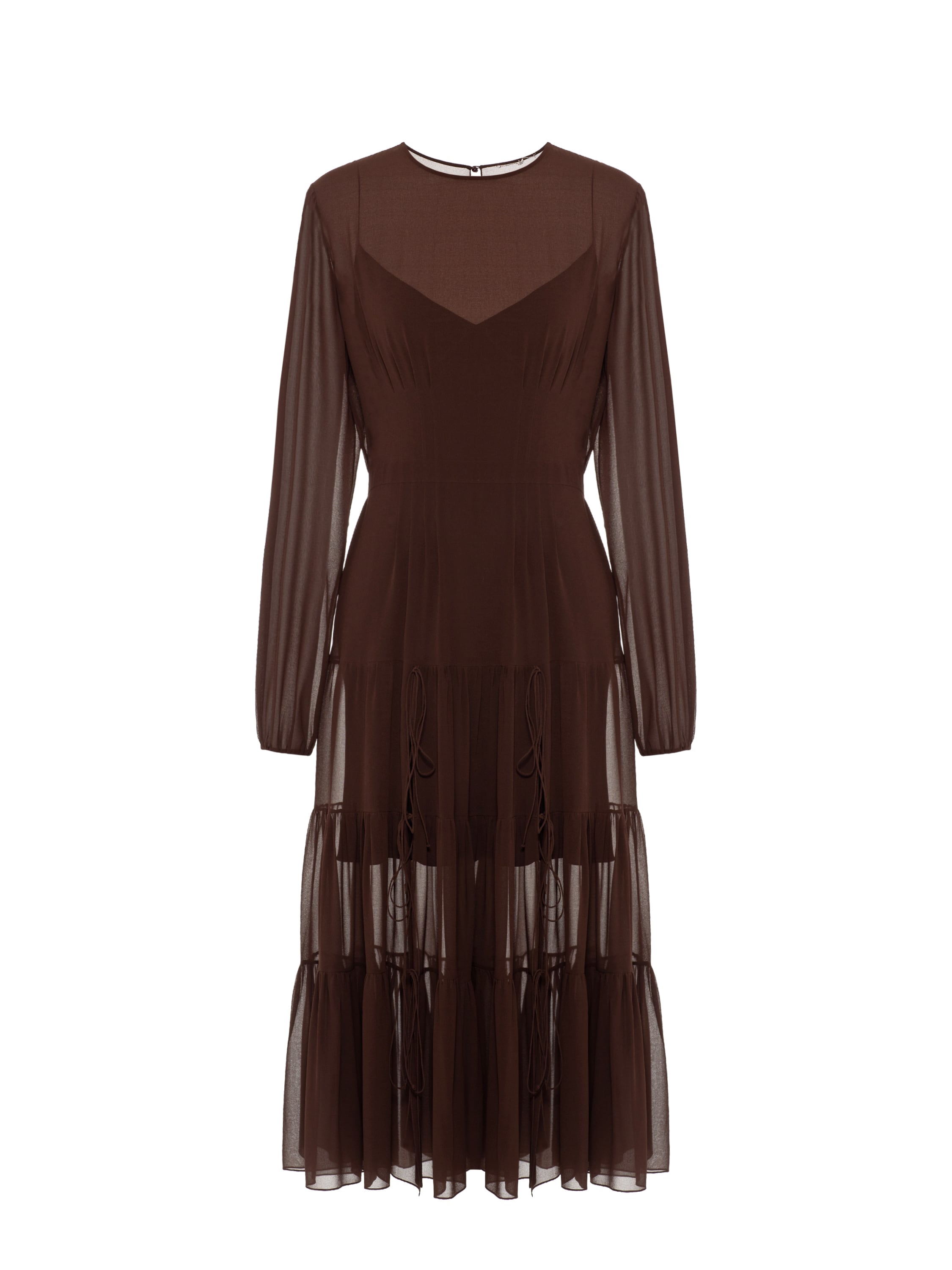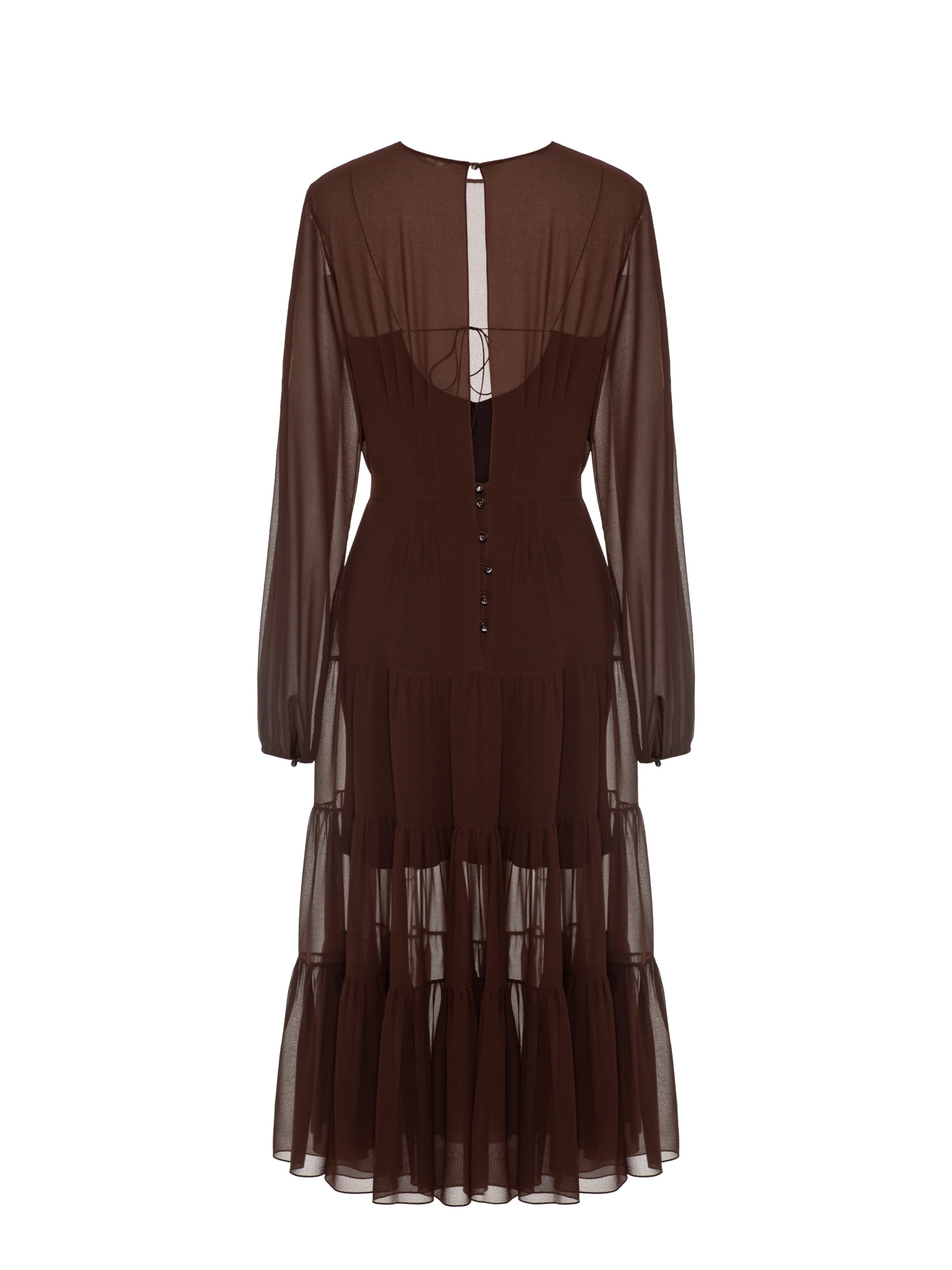 Темно-коричневое платье-миди из шифона