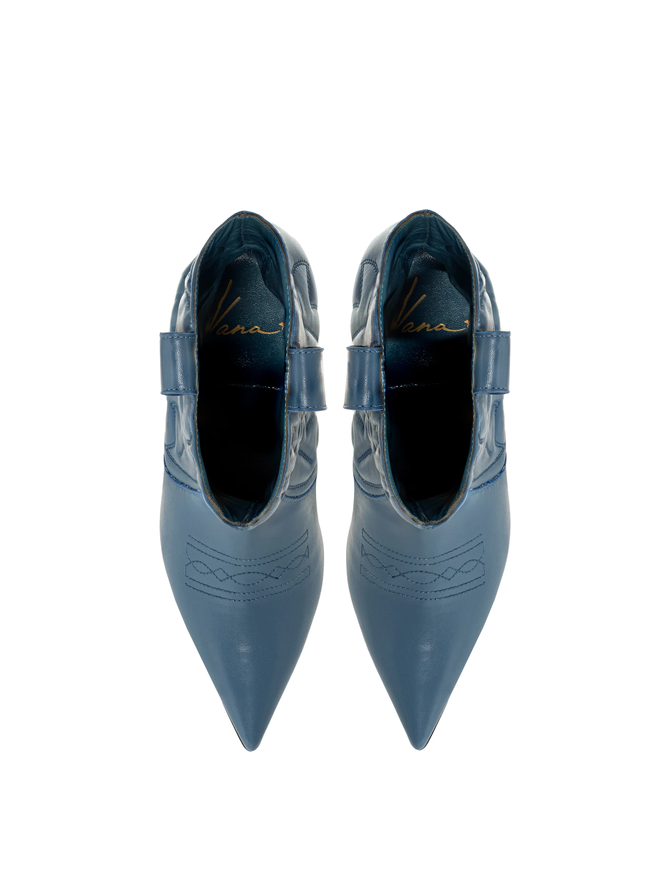 Голубые кожаные казаки на каблуке