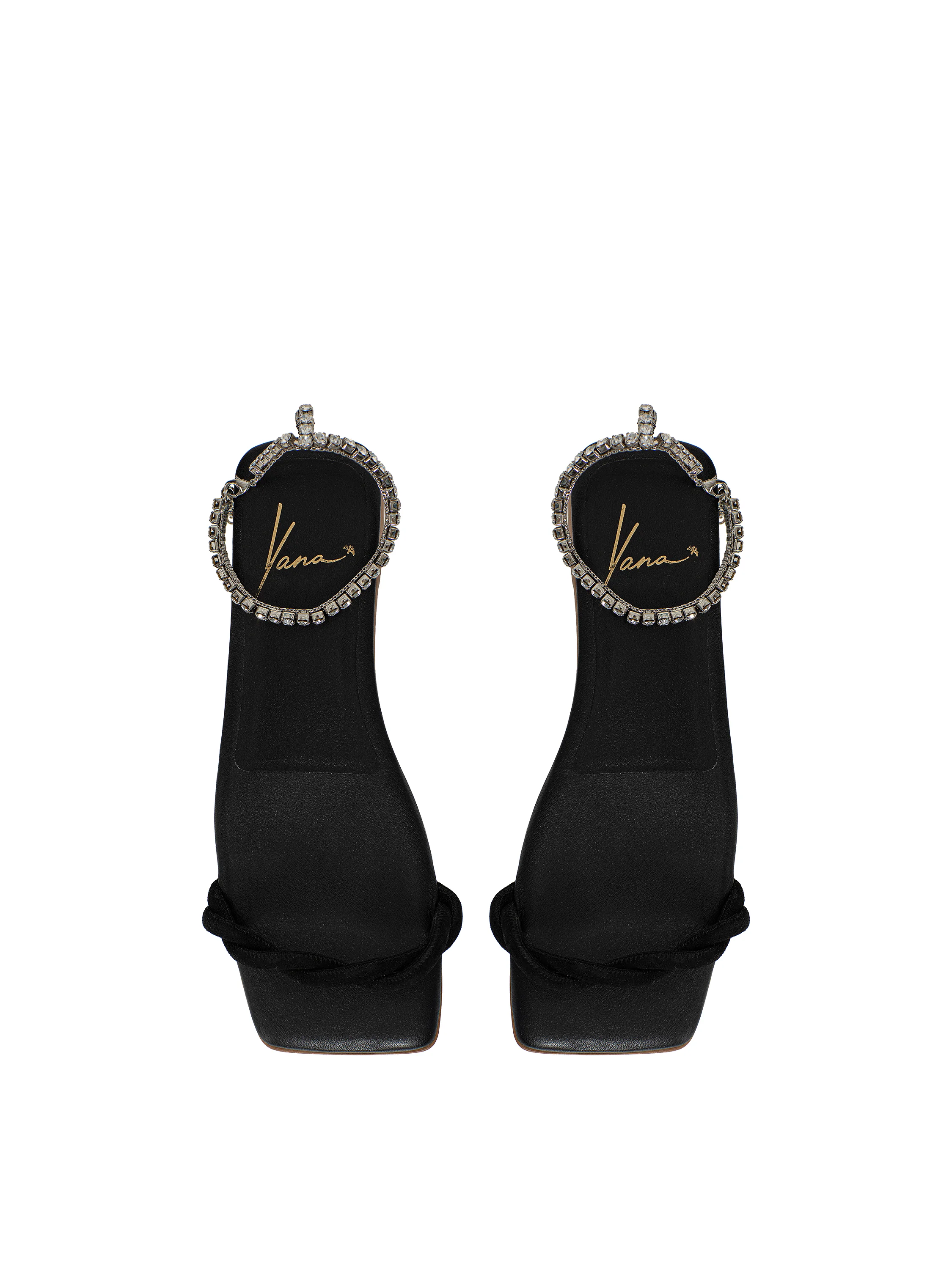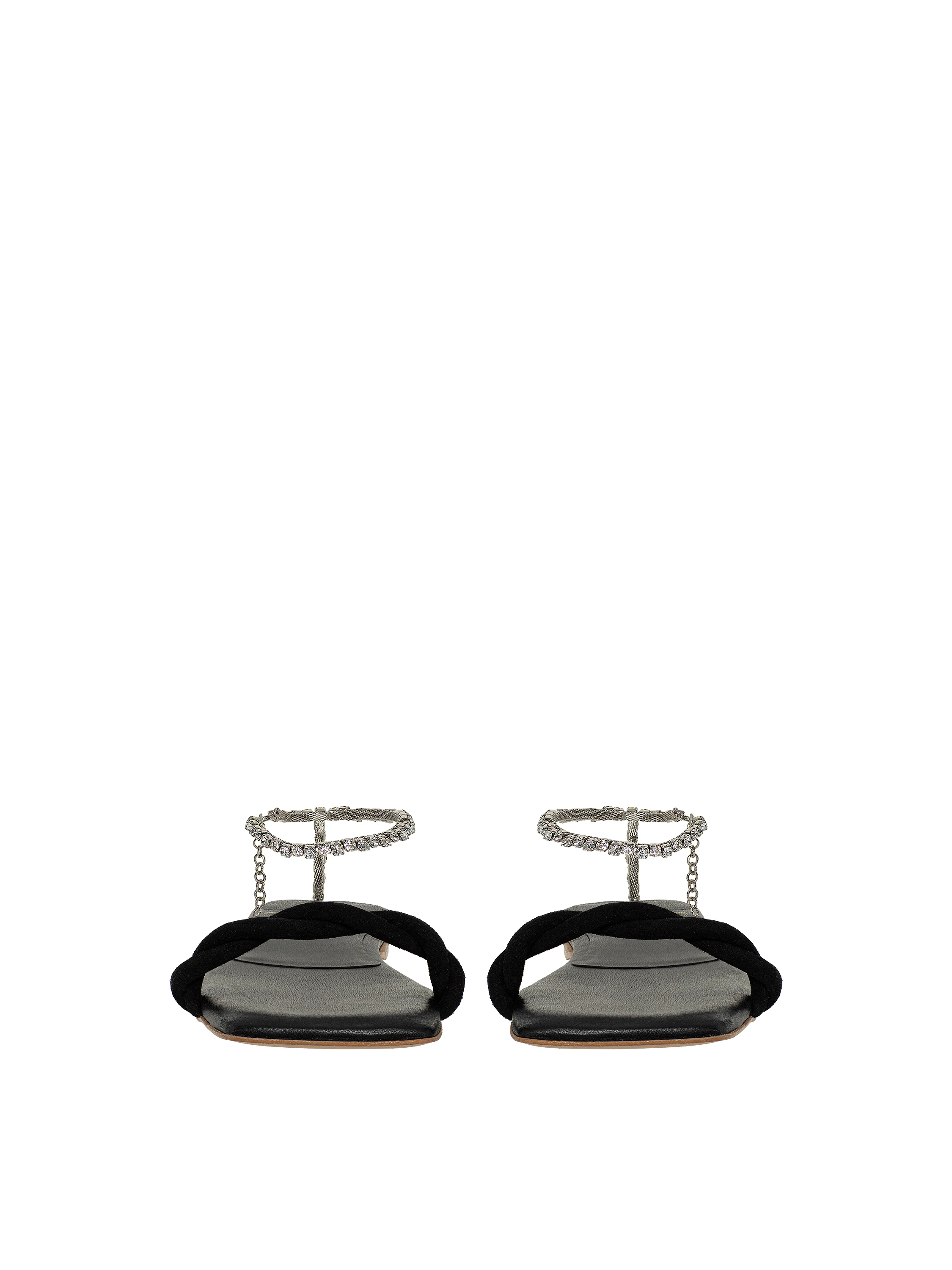 Черные сандалии из кожи со стразами