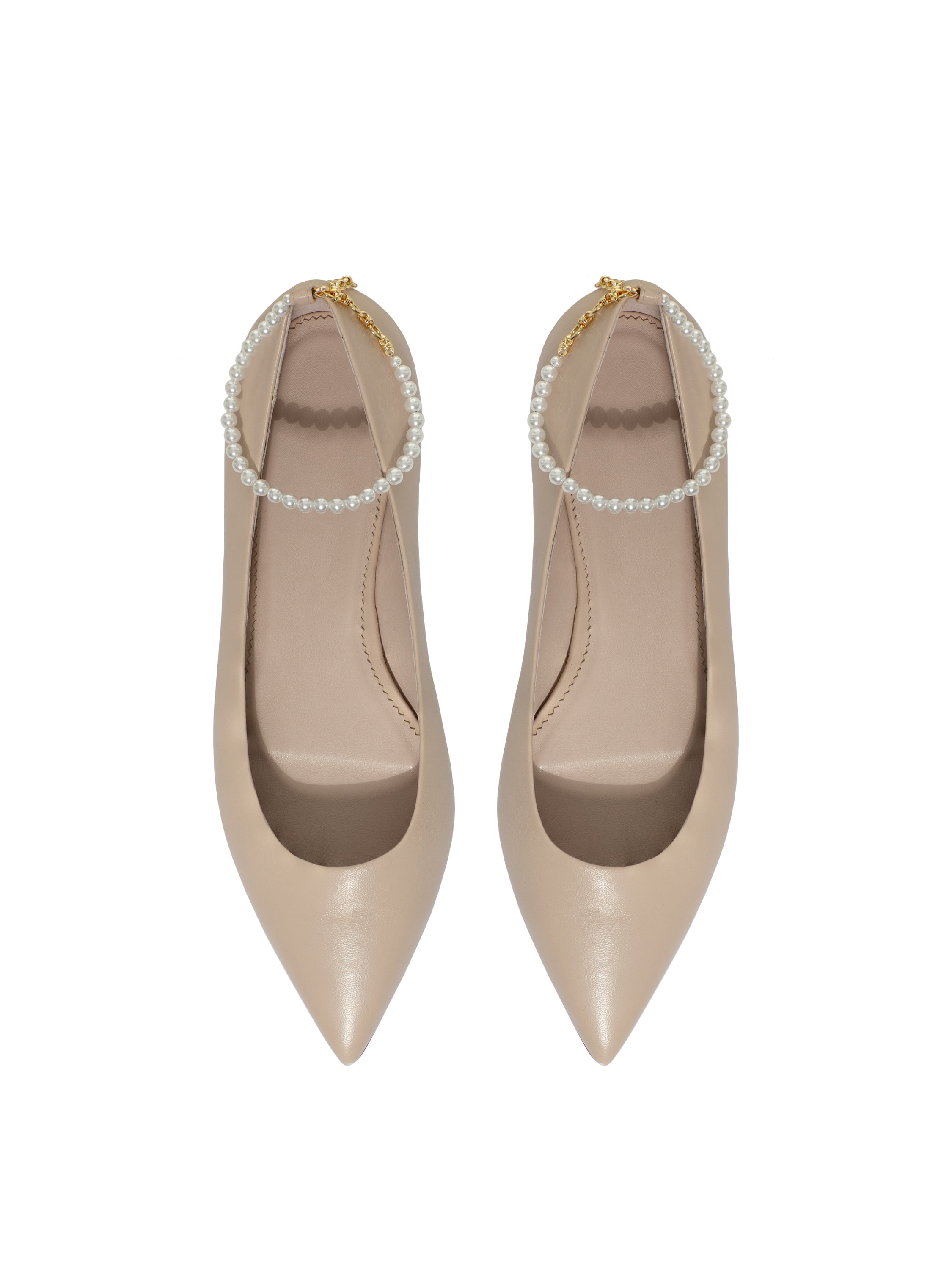 Бежевые балетки из кожи с острым мысом и жемчугом